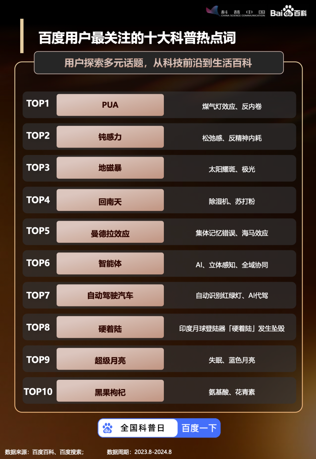 《2024全国科普日百科知识数据报告》出炉百度用户最关注的科普内容有哪些?